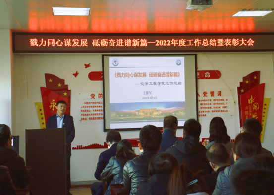 3月8日下午,化学工程学院2022年度工作总结表彰大会暨2023年度工作部署会在稚川楼310隆重召开,学院全体教师参加会议,会议由学院党委书记战君主持。
