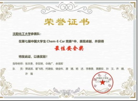 同时以朱正璐、何靖俊、张岩、程家宝为代表的党支部毕业生学生党员在学习和科技创新竞赛等方面同样取得了丰硕的成果,先后荣获国家奖学金、辽宁省优秀毕业生等多项荣誉,发挥了榜样示范引领作用。;其中,推免至东南大学的朱正璐同学获全国大学生化工设计竞赛国家级二等奖及东北赛区特等奖、全国大学生化工实验大赛东北赛区一等奖、辽宁省高等学校本科大学生化工原理大赛特等奖等多项荣誉;推免至沈阳化工大学的退伍士兵何靖俊代表学校参加在清华大学举办的全国大学生Chem-E-Car竞赛,取得最佳安全奖的好成绩。