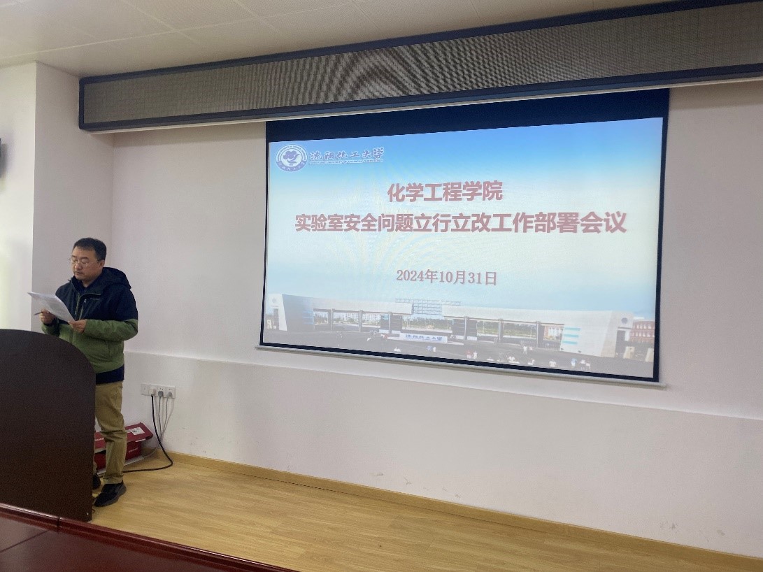 学院实验室安全主管张翔老师对《巡视期间立行立改问题移交表》(编号:001)相关问题的整改通知内容进行了逐条解读,针对我院现存的实验室安全问题也提醒相关实验室负责人抓紧时间整改。同时介绍了《沈阳化工大学实验室安全分级分类管理办法》和《沈阳化工大学实验室安全奖励与责任追究办法》。