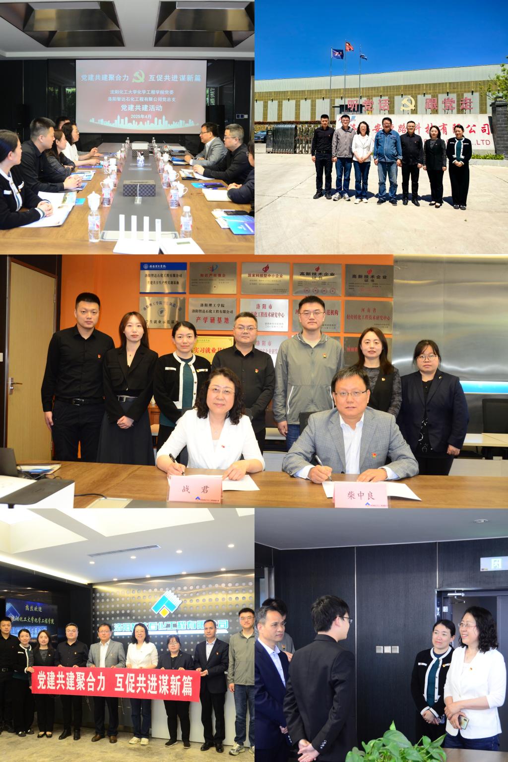 为进一步提升党建工作水平,强化党建引领作用,推动党建与中心工作深度融合,深化院企合作,拓宽就业渠道,4月13日至16日,化学工程学院党委书记战君、党委副书记孙晓静、专任教师张光伟、就业处干事刘悦以及辅导员穆鹏丞一行赴洛阳、郑州等地,开展“党建赋能聚合力 共促发展谱新篇”党建联建共建活动,旨在进一步促进院企在专业建设、人才培养、产教融合、科技创新等多领域的合作,实现以党建促学习、以共建谋发展。