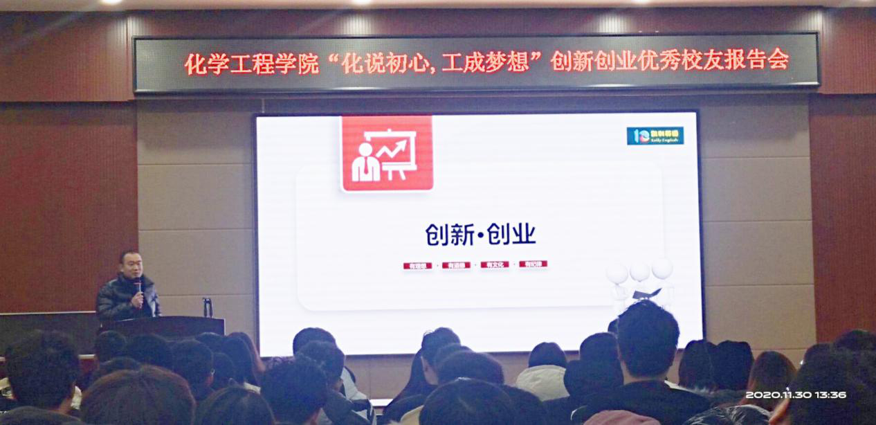 为进一步加强创新创业教育工作,激励广大在校大学生努力学习,励志成才。11月30日下午13点30分,化学工程学院在青年之家举办了“化说初心,工成梦想”之创新创业为主题的优秀校友报告会。化学工程学院2005届优秀毕业生、沈阳高德茶行有限公司创办人、凯利英语创始人赵轩锋,为我校学生做了创新创业方面的报告会,交流创业体会,分享创业心得,畅谈人生感悟。参加此次报告会的还有化学工程学院党总支副书记余海军老师,辅导员岳帅老师。