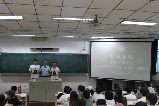 最后,余书记为化工专业首批签约恒力石化的两位同学进行表彰。