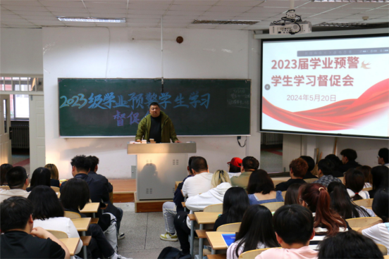 为加强学风建设和学生学习过程管理,全面了解学生的学习困难与思想动态,增强学生工作的实效性,化学工程学院于2024年5月20日晚6点在瑞师楼120教室召开2023级学业预警学生学习督促会,针对预警学生开展精准帮扶。本次会议由2023级辅导员王博主持。2023级全体学业预警学生、各班班长和学习委员参会。