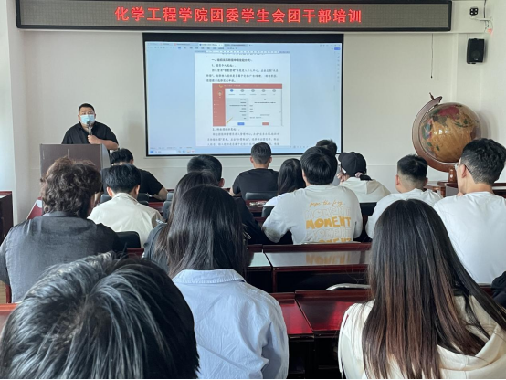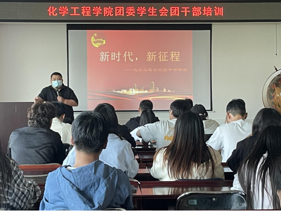 化学工程学院团委书记王博老师为全体团干部进行培训,以“新时代 新征程”为主题,从青年工作的新时代、新思想、新任务进行分析讲解,阐述了新青年应树立和培育社会主义核心价值观,要在勤学、修德、明辨、笃实上下功夫。最后王博老师对全体学生干部提出期盼:勤勉用功、学思并进,丰富和完善自我,做到学以致用,创造新的青春业绩。