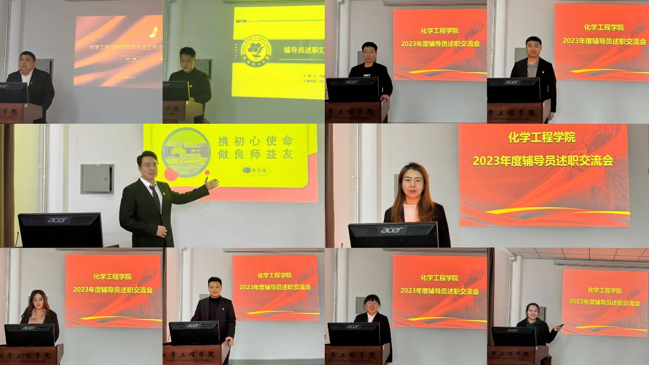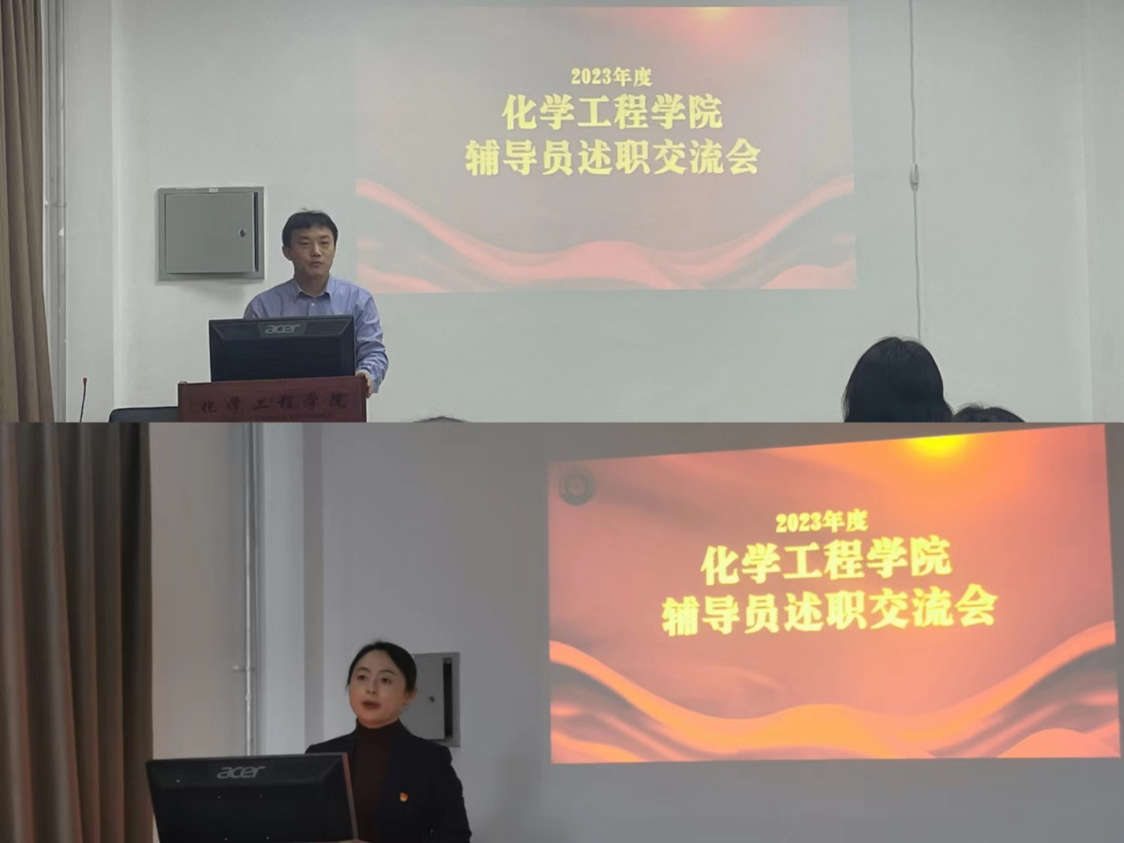 为加强学生工作队伍建设,推动学生思想政治工作高质量发展,化学工程学院于12月25日上午在鸣龙楼306召开2023年度辅导员述职交流会。学院领导班子和党委委员担任评委,学院党委副书记孙晓静主持述职会。