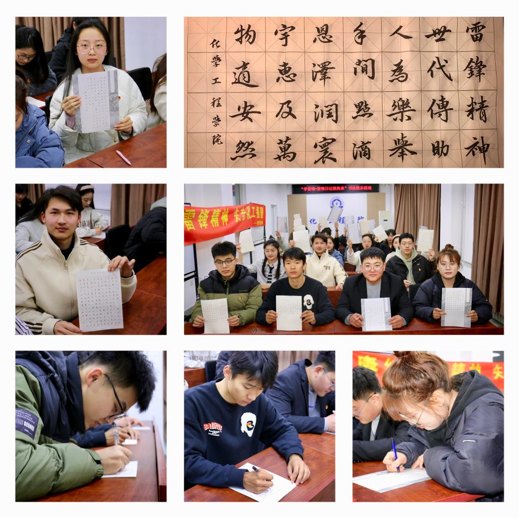 “学雷锋-雷锋日记我传承”书法展示活动。化学工程学院的学生们手抄《雷锋日记》,用“一笔一画”,描绘出雷锋不朽的模样;用“一言一行”,勾勒出绿棉帽下年轻的面庞。同学们在提高书法技能的同时,还深刻体会到雷锋精神的内涵,让雷锋满心满眼都是人民的形象愈发饱满,也激励着学生们在成长的过程中培养优秀品质,践行雷锋精神,在潜移默化中将雷锋精神内化于心、外化于行。