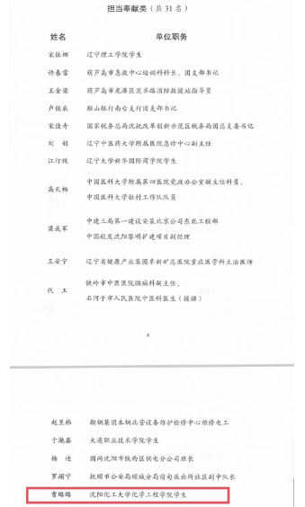 为全面贯彻落实党的二十大精神,深入学习贯彻习近平总书记关于青年工作的重要思想,大力推进青少年思想道德建设,弘扬社会主义精神文明,突出典型引领,动员广大青少年把目光投向身边人和身边事,寻找、发现、推荐一批模范践行社会主义核心价值观、带头传播正能量的身边好青年,团省委在全省广泛深入开展了2023年“争做新时代辽宁向上向善好青年”主题活动。本次活动自启动以来,受到社会各界广泛关注,广大青少年踊跃参与,主办方共收到来自全省各地、各行各业285位好青年的推荐申请。经过集中资格筛选和专家评审,最终推选出爱岗敬业、创新创业、勤学上进、担当奉献、崇德守信、爱网护网6类共计11名“辽宁向上向善好青年”我校化学工程学院2021级硕士研究生曹璐璐获“担当奉献类”“新时代辽宁向上向善好青年”荣誉称号。