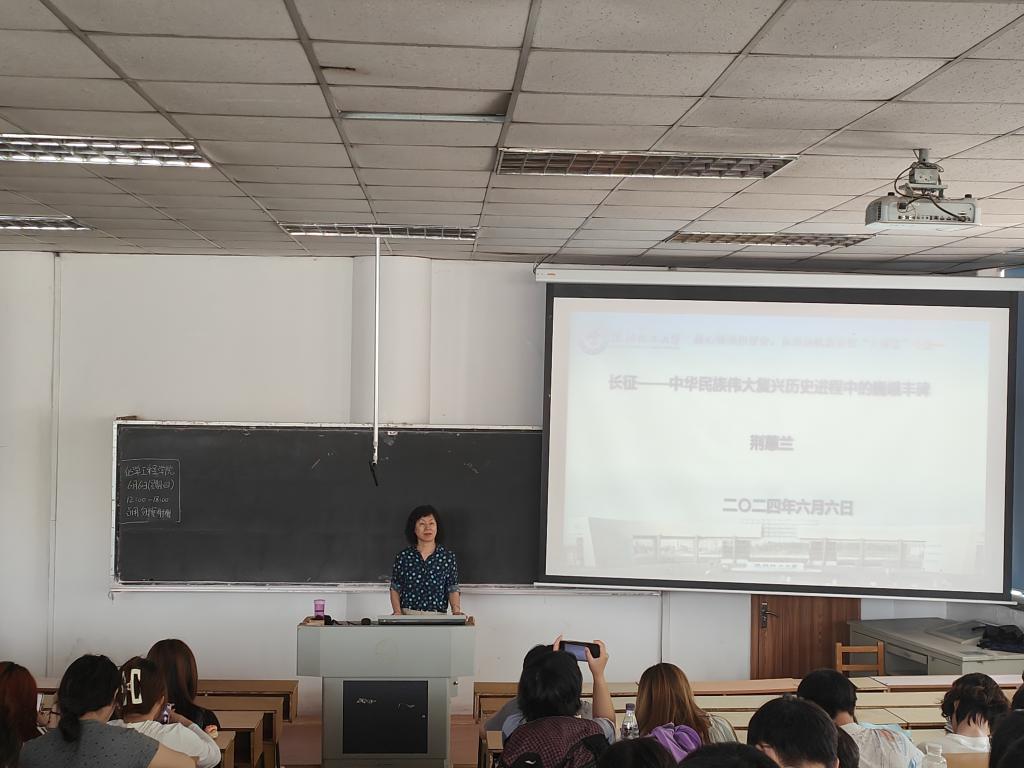荆蕙兰教授讲座的主题是《长征—中华民族伟大复兴历史进程中的巍峨丰碑》。报告通过讲述长征历史故事引出长征精神的内涵:把全国人民和中华民族的根本利益看得高于一切,坚定革命的理想和信念,坚信正义事业必然胜利的精神;为了救国救民,不怕任何艰难险阻,不惜付出一切牺牲的精神;坚持独立自主、实事求是,一切从实际出发的精神;顾全大局、严守纪律、紧密团结的精神;紧紧依靠人民群众,同人民群众生死相依、患难与共、艰苦奋斗的精神。长征精神为中国革命不断从胜利走向新的胜利提供了强大的精神动力。荆蕙兰教授强调,在新的征程中,还有许多“雪山”“草地”需要跨越,还有许多“娄山关”“腊子口”需要征服。“风好正是扬帆时,不待扬鞭自奋蹄”,青年大学生应赓续长征精神,路遥而不坠其志,行远而不改初衷,意气风发奔赴“充满光荣和梦想的远征”,走好新时代我辈的长征之路,奋力谱写中国现代化新篇章。