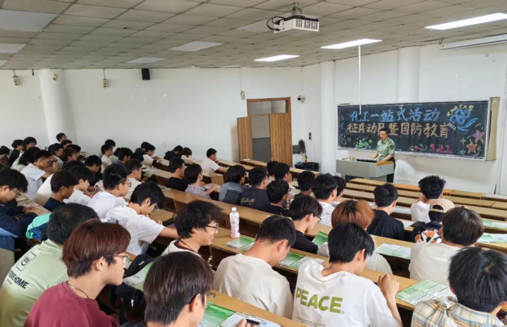 为激发青年学子参军报国热情,增强国防安全意识,5月21日,化学工程学院举办征兵动员暨国防教育专题讲座。活动邀请武装部王希阳老师担任主讲嘉宾,学院团委书记王博老师及200余名学生齐聚一堂,共上一节热血澎湃的国防教育课。