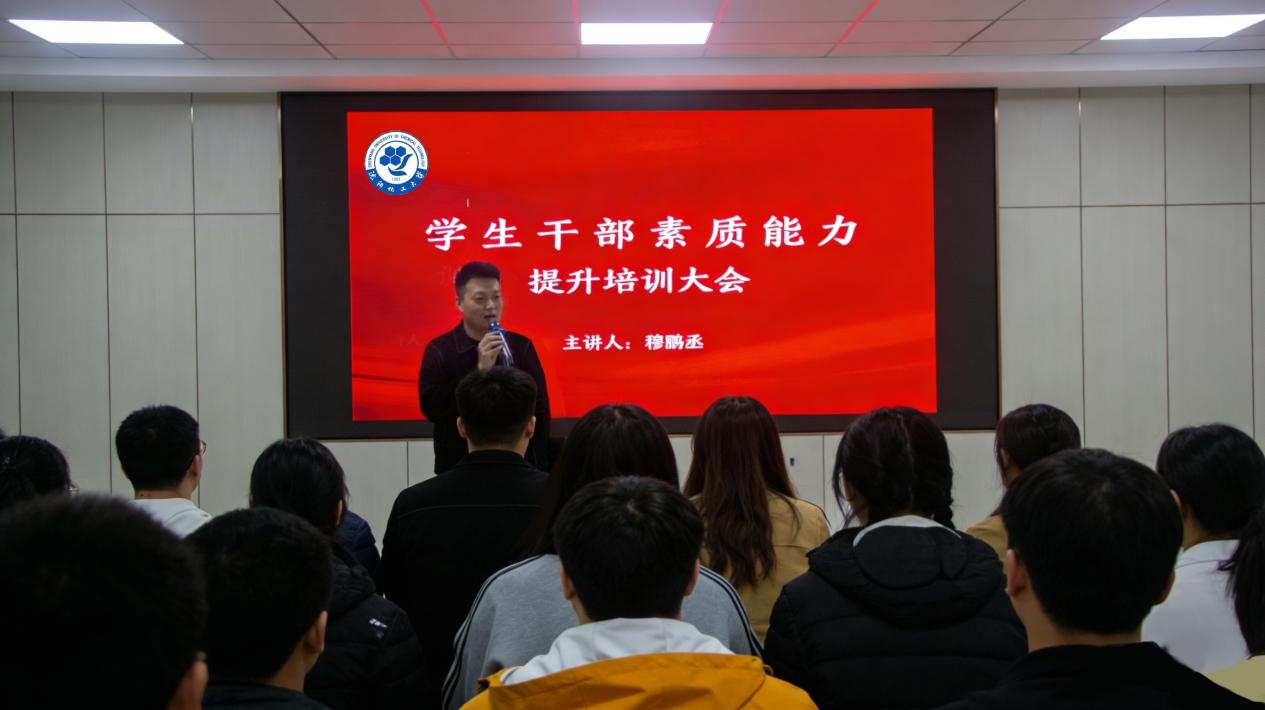 随后,学院团委书记穆鹏丞以“勤学善思提本领,躬身力行做表率”为题作学生干部素质能力提升专题培训。他结合学校、学院学生工作实际以及自身工作经历,从学生干部的角色定位、责任担当、沟通协调、执行落实等方面进行了讲解。他强调学生干部要不断加强理论学习,提高政治站位,强化服务意识,注重工作方法,在服务同学的过程中实现自我成长。他勉励全体学生干部以更加饱满的热情、更加务实的作风投入到新学期工作中,发挥好桥梁纽带作用,为学院发展贡献青春力量。