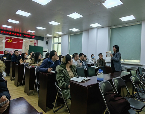 随后,邀请学校质量建设与绩效考核办公室毕颖老师做《教学材料规范化培训》专题报告。毕颖老师围绕教学管理文件、教学流程、考核方式、材料归档要求等内容,进行了系统且全面的讲解。她细致梳理了备课、授课、考核等教学环节的标准化流程,进一步明确了教师的职责与行为规范,着重强调了教学材料规范化对于提升教学质量、保障教学秩序的重要意义。培训过程中,毕颖老师结合现场展示的试卷材料,用通俗易懂的方式解答了青年教师提出的“材料整理”“过程性评价”等实际问题,鼓励青年教师将规范化管理作为提升教学质量和育人成效的重要手段。参会教师们积极互动,现场学习氛围浓厚。